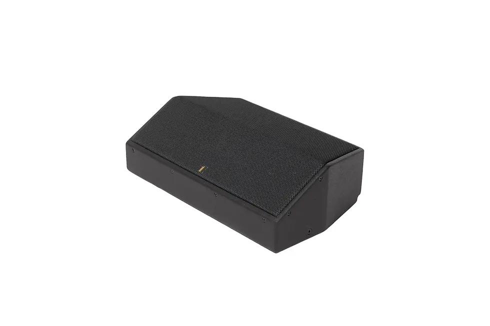 The CM38 is a high-performance, low-profile stage monitor with a passive three-way system that generates a cardioid directivity pattern. It is equipped with two 8" tetracoil woofers, plus a central 8" coaxial transducer with a 3" voice coil for the low-frequency element and a 2" voice coil for the high-frequency element. Its progressive horn design offers excellent coherence of attenuation over distance between the high end and the low end of the spectrum. This creates a diffusion pattern that goes from 80° for a listener standing near or above the monitor, down to 40° as it throws far across the stage.